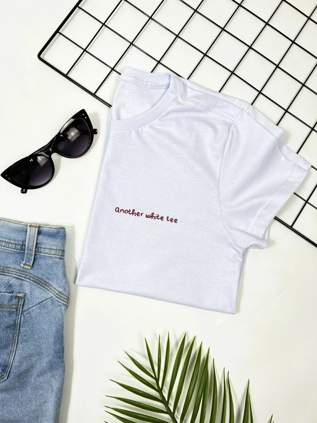 Simples, mas com estilo, apresentamos a "Another White Tee" – a camiseta branca que redefine o básico. Com a frase discreta e descontraída "another white tee", esta peça celebra a atitude descontraída, mostrando que o básico pode ser extraordinário.